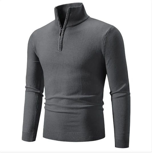 Vintergenser for menn - Turtleneck med halv glidelås, bomullstrikk