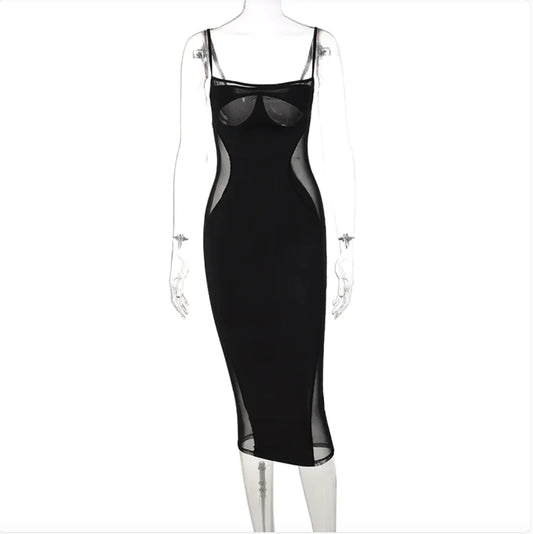 Europeisk og amerikansk stil mesh stitch slim kjole - sommermote