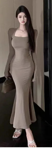 Vanlig pris 533,04 NOKVanlig prisEnhetspris / perSalgspris 533,04 NOKKvinners Skinny Slimming Hip Fishtail Square Collar Dress