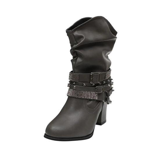 Vanlig pris 827,31 NOKVanlig prisEnhetspris / perSalgspris 827,31 NOKSprigo - Ankelstøvletter i skinn i vestlig stil med stroppdetaljer
